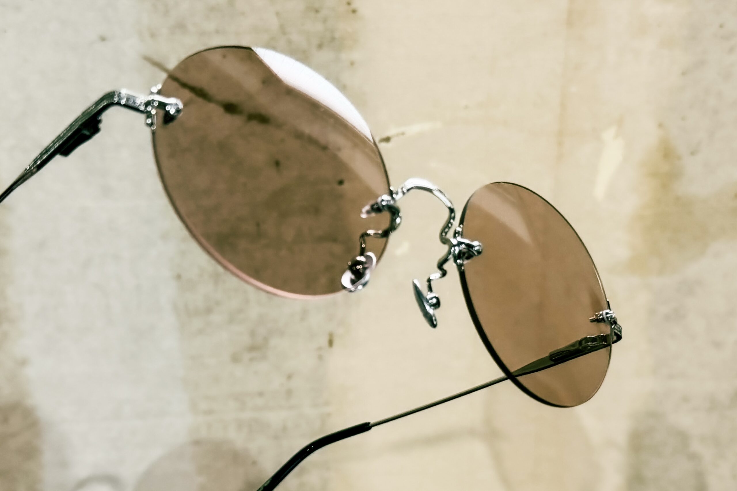 ヴィンテージメタルモデルに見られる特徴的なブリッジデザインも魅力で、ミニマルデザインの中にもモードを漂わせる上品な仕上がりに。