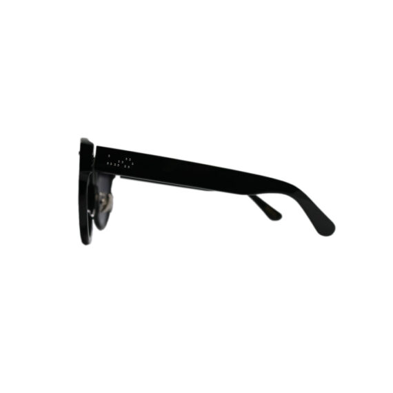 フロントエンドに立体的なドットパーツを埋め込み、左テンプルのブランドロゴは光の当たる角度でロゴが浮き出てくる1mmプレスを採用。コラボレーションならではの存在感をさりげなく大胆に。