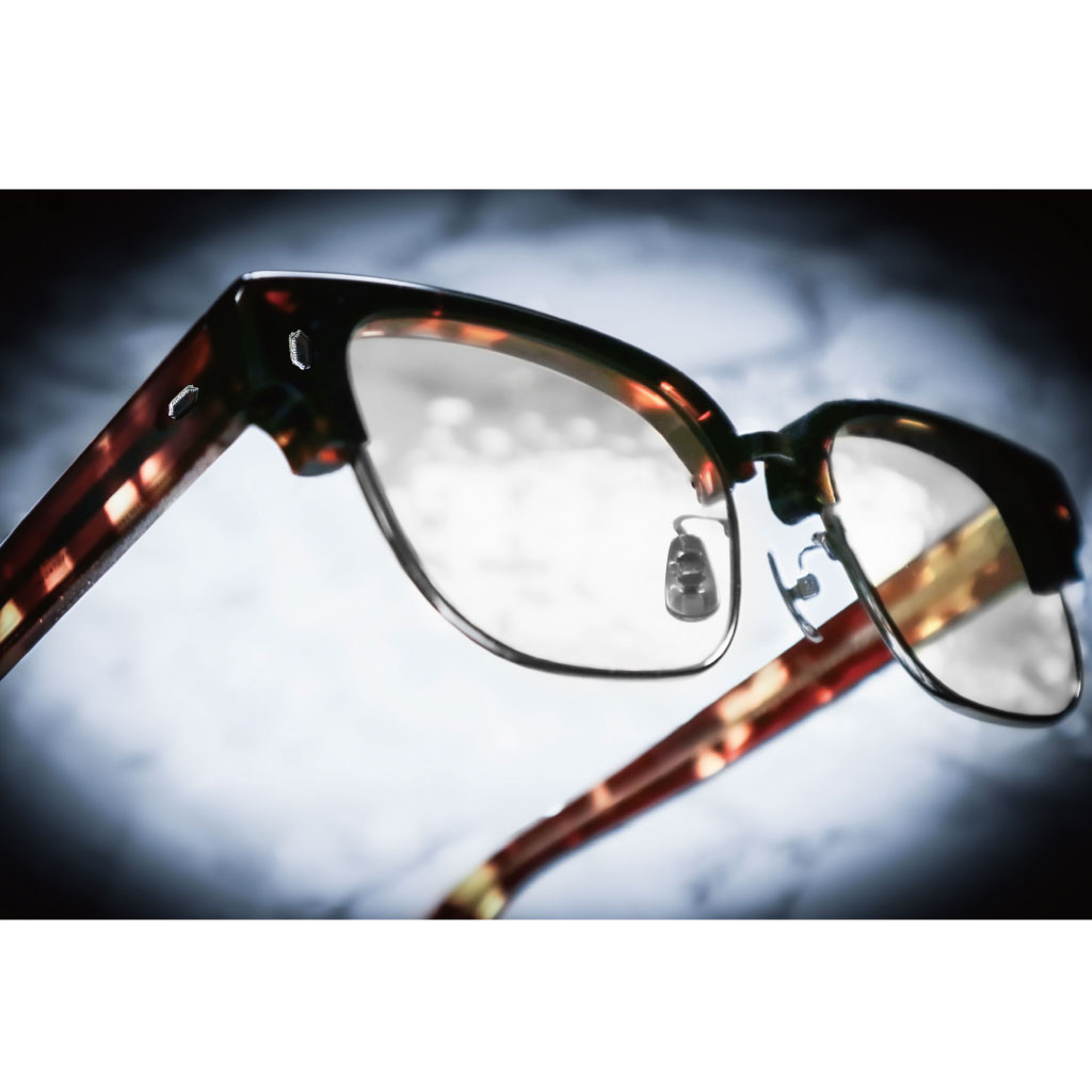 上質なアセテート8mm生地を職人が一本一本丸みを出すように磨き上げることにより、無骨な雰囲気の中にも柔らかさをプラス。