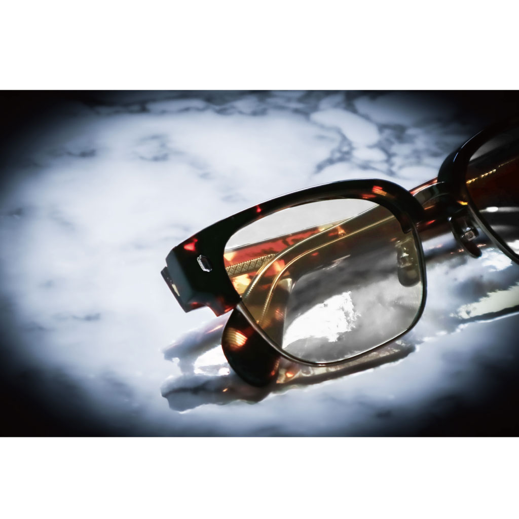 フロントエンド、テンプルにはヘキサゴンのシルバー925パーツが輝きさりげなく大胆に存在感を演出し、レンズを2カーブレンズにする事で光をシャープに反射させ、上品かつ洗礼された雰囲気に。