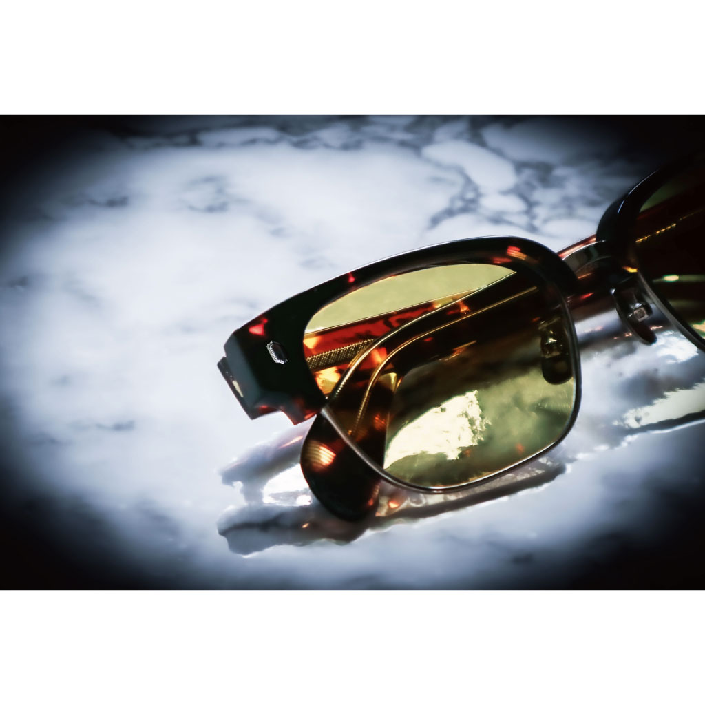 上質なアセテート8mm生地を職人が一本一本丸みを出すように磨き上げることにより、無骨な雰囲気の中にも柔らかさをプラス。