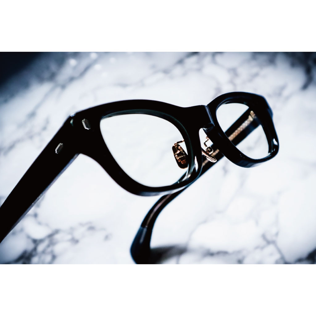 上質なアセテート8mm生地を職人が一本一本丸みを出すように磨き上げることにより、無骨な雰囲気の中にも柔らかさをプラス。