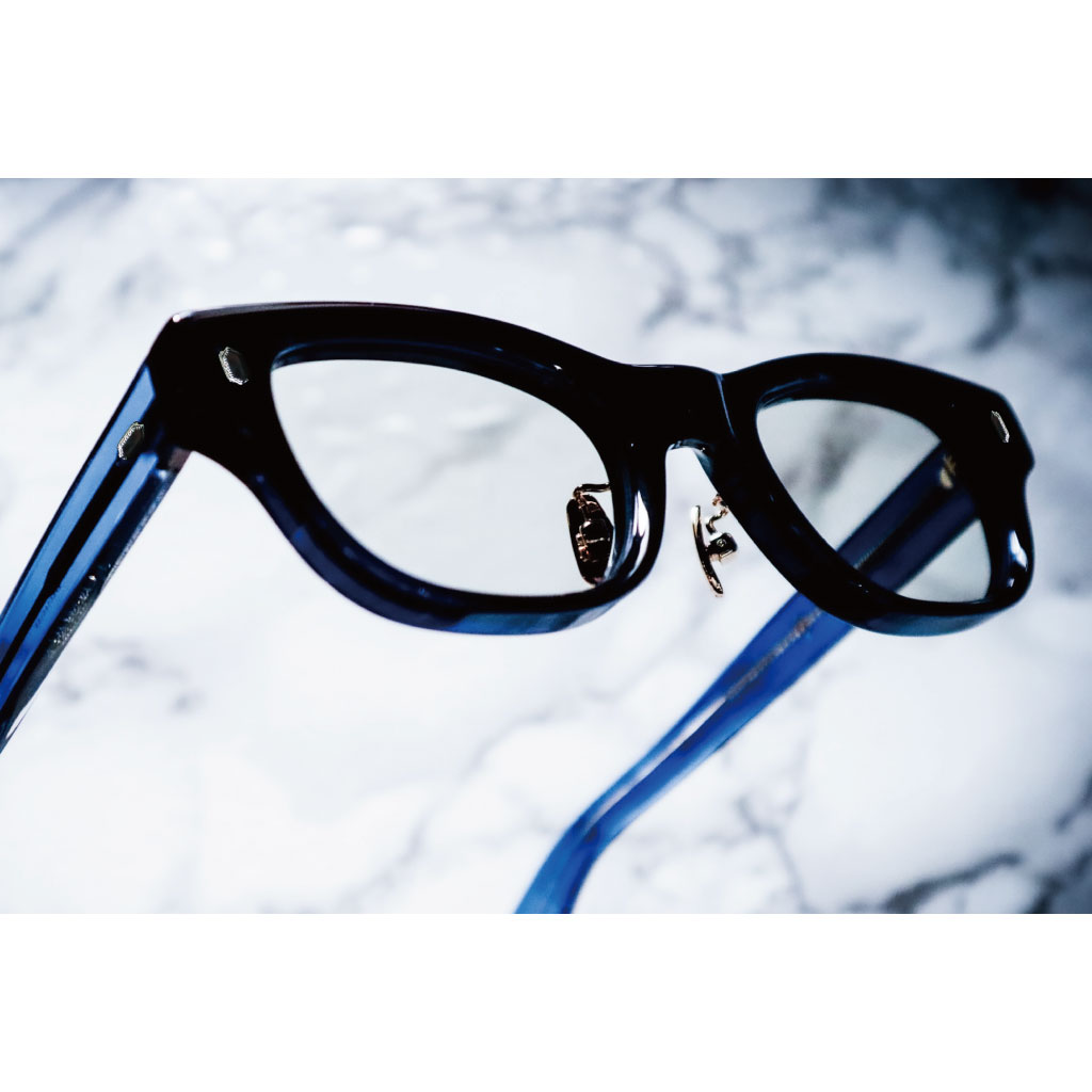上質なアセテート8mm生地を職人が一本一本丸みを出すように磨き上げることにより、無骨な雰囲気の中にも柔らかさをプラス。