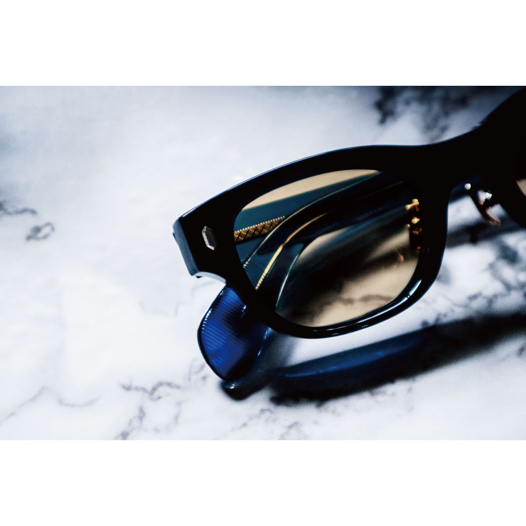 フロントエンド、テンプルにはヘキサゴンのシルバー925パーツが輝きさりげなく大胆に存在感を演出し、レンズを2カーブレンズにする事で光をシャープに反射させ、上品かつ洗礼された雰囲気に。