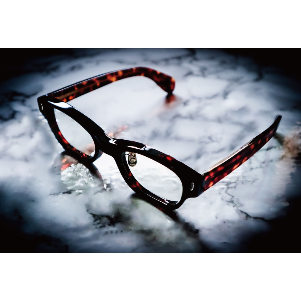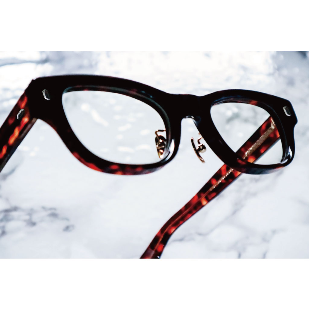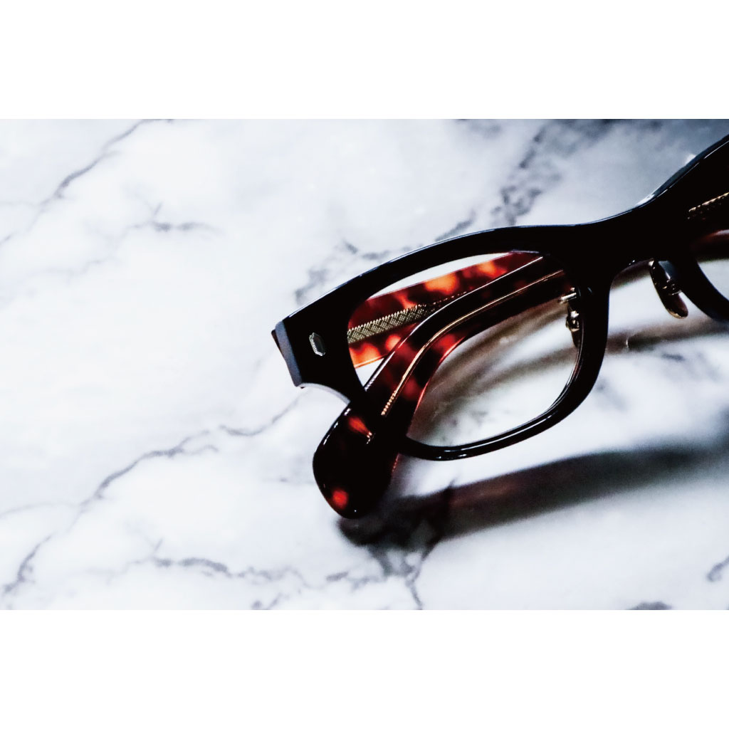 上質なアセテート8mm生地を職人が一本一本丸みを出すように磨き上げることにより、無骨な雰囲気の中にも柔らかさをプラス。