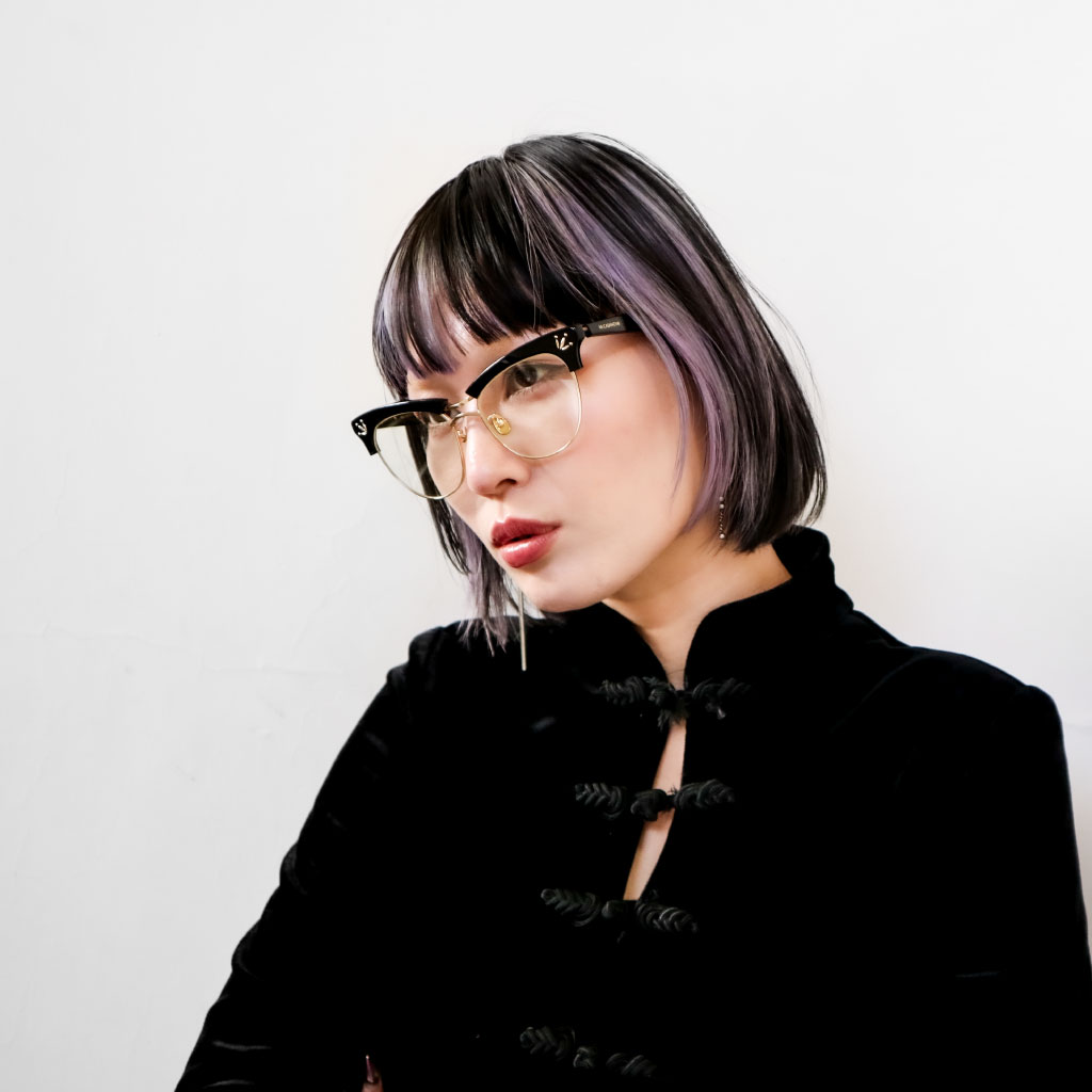 セル部分のリムの厚みを太く設定する事で、女性にも男性にも着用出来るジェンダーレスなバランスに仕上げています。