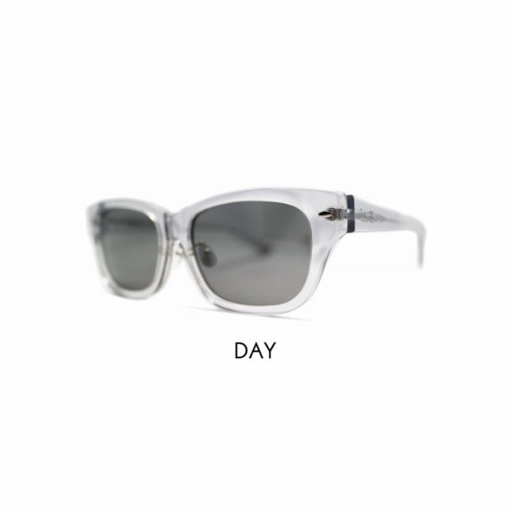 こちらは、紫外線の量に応じてクリアレンズからサングラスカラーに変化していく<調光レンズ>を採用しています。