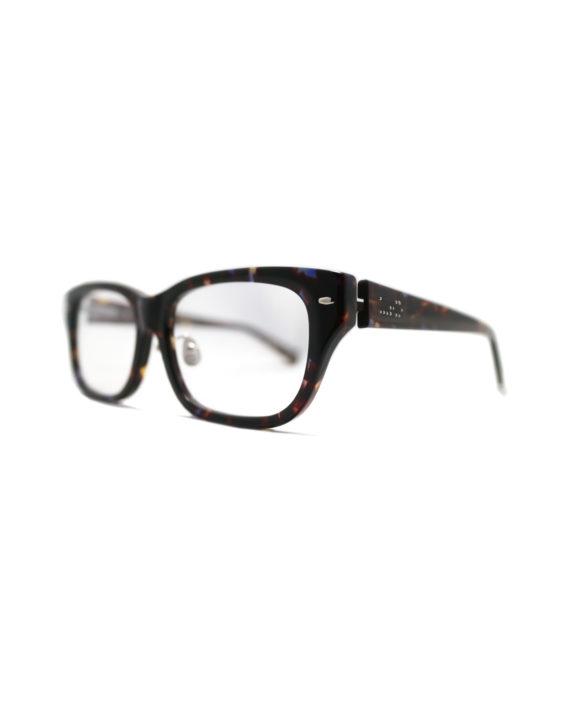 シンプルでスタンダードなフォルムでありながら、ヴィンテージスタイルに通じるテレビジョンカットをレンズ周りに施し、フロントエンドにはヘキサゴンスタッズを埋め込みさりげない遊び心も演出。