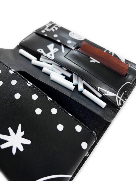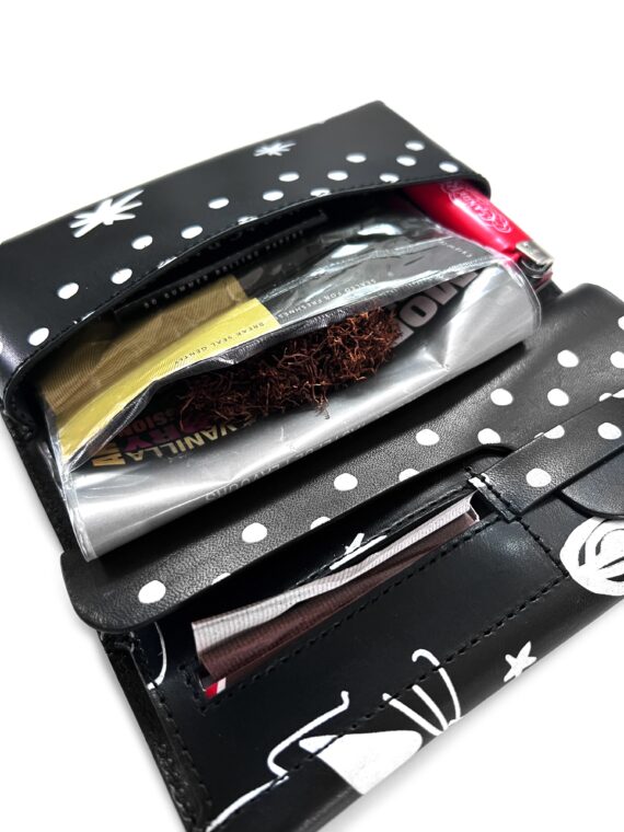 手巻きタバコの収納に便利な細かいディティールを採用していますが、タバコを吸わない方にはパスポートやチケット、イヤホンや充電器を入れてトラベルポーチとしてもお使い頂けます。