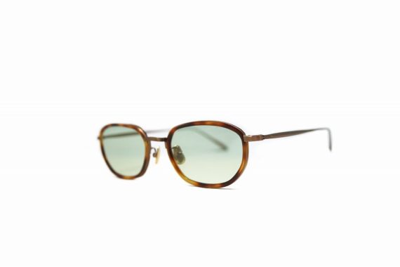 オプティカルフレームの小振りなサイズ感が魅力で、テンプルは極限まで細くしながらも立体的なデザインにすることで遊び心を演出し、トラディショナルな雰囲気を醸し出すモデルです。