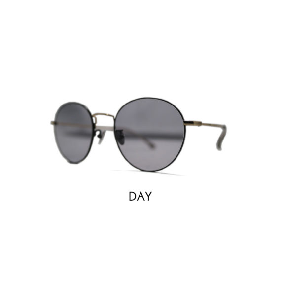 こちらは、紫外線の量に応じてクリアレンズからサングラスカラーに変化していく<調光レンズ>を採用しています。
