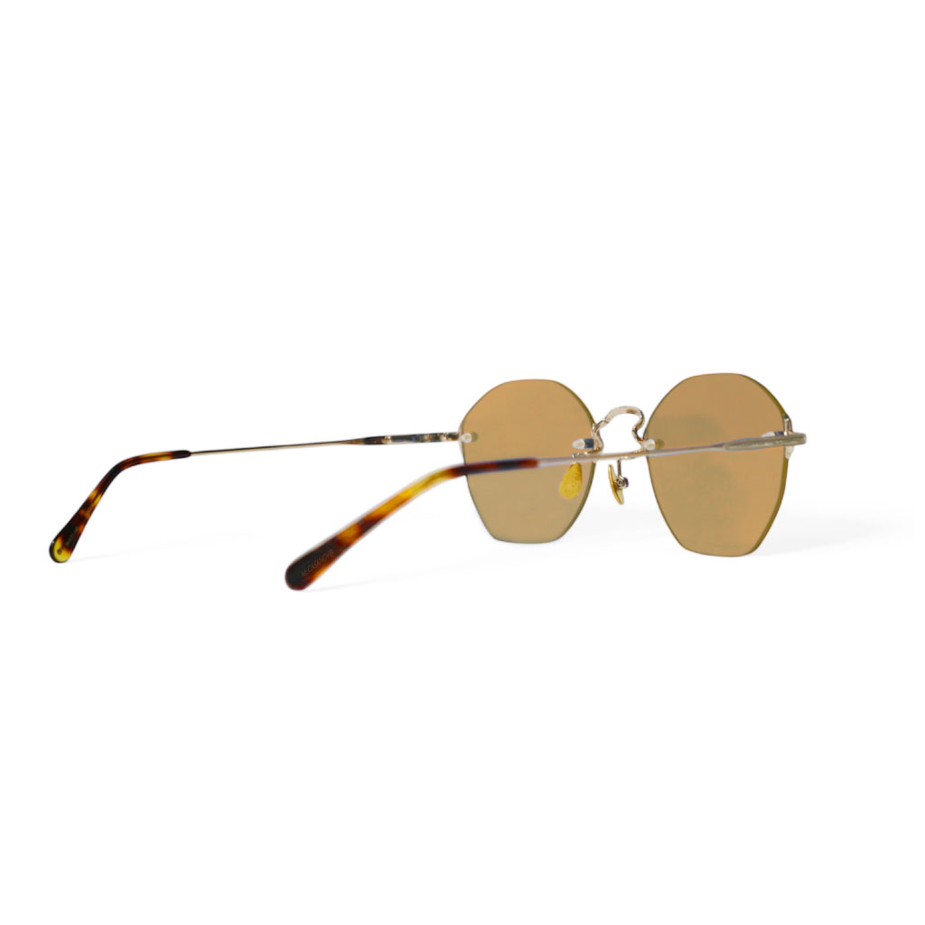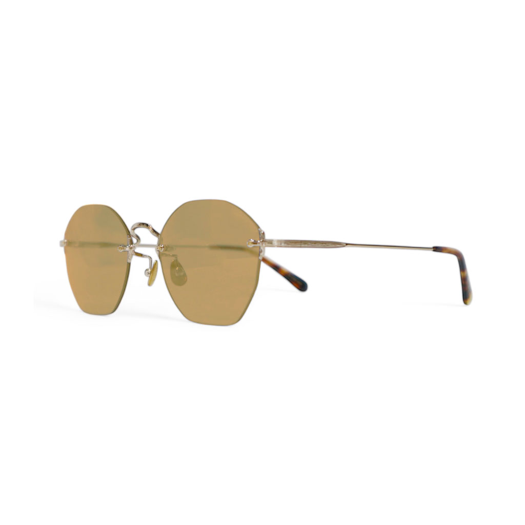 オクタゴンに丸みをつけた繊細なリムレスシェイプが特徴のモデル。