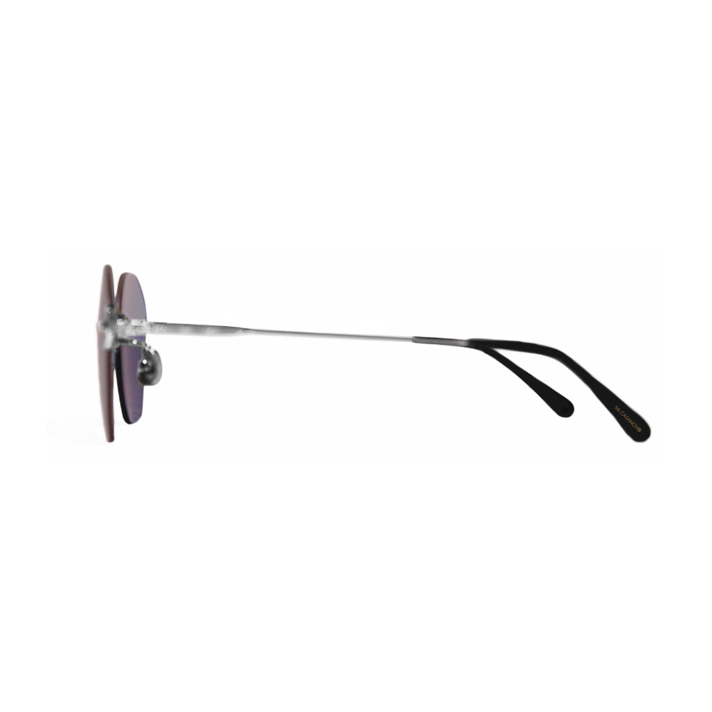 オクタゴンに丸みをつけた繊細なリムレスシェイプが特徴のモデル。