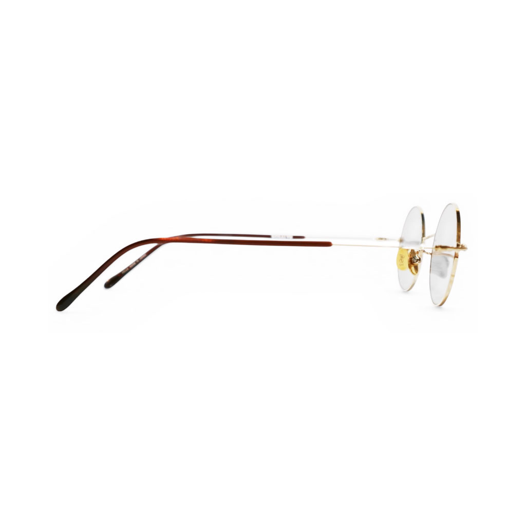 クラシックな雰囲気になりすぎないように真円ではなく、天地幅を狭くしているので顔馴染みが良いのもポイント。