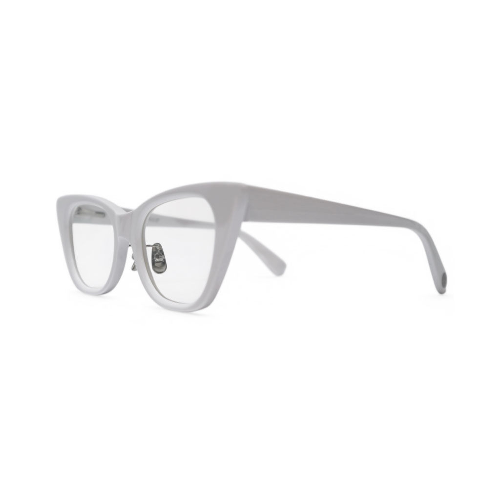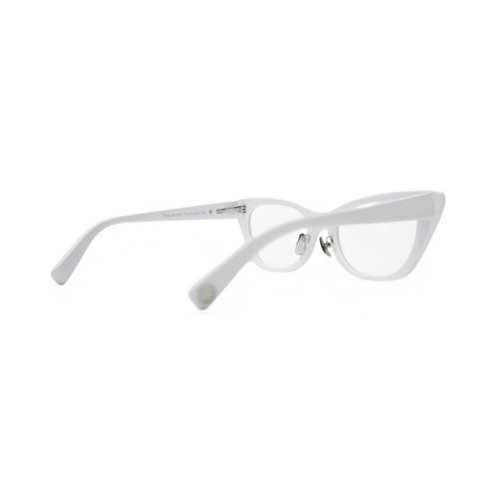 フラットレンズを採用しているので、反射が強くモードな雰囲気に仕上げていながらも、リムを細く設定し、丸みをつけるように磨く事でエッジが出過ぎず、顔馴染みを良くしているのでジェンダーレスに着用出来るもポイントです。