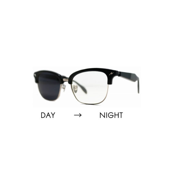 こちらは、紫外線の量に応じてクリアレンズからサングラスカラーに変化していく<調光レンズ>を採用しています。
