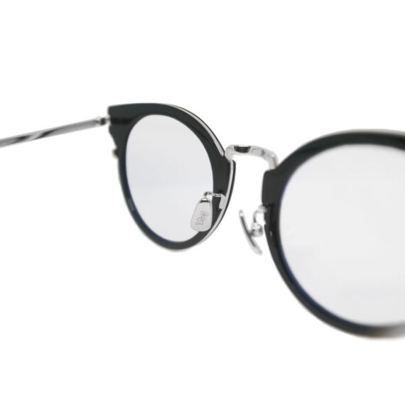 丸みのあるキャッツアイシェイプが特徴のモデルで、フロントにはメタルシートを挟み込み、セルとメタルのコンビネーションの高級感を演出。