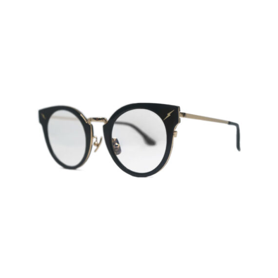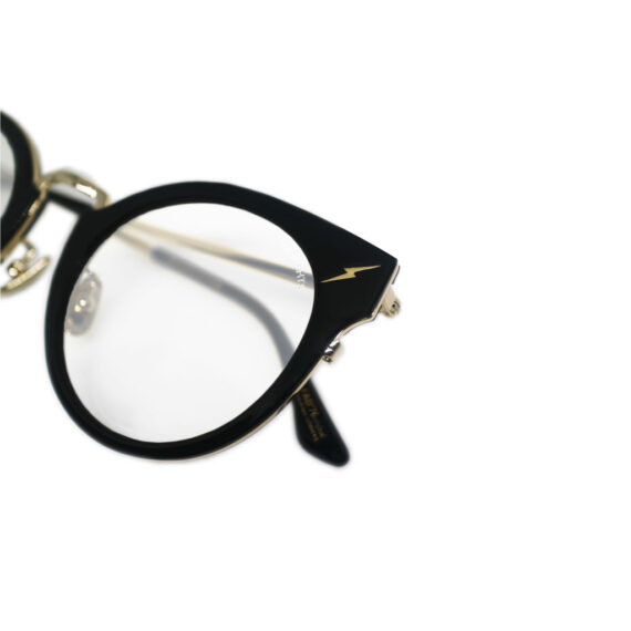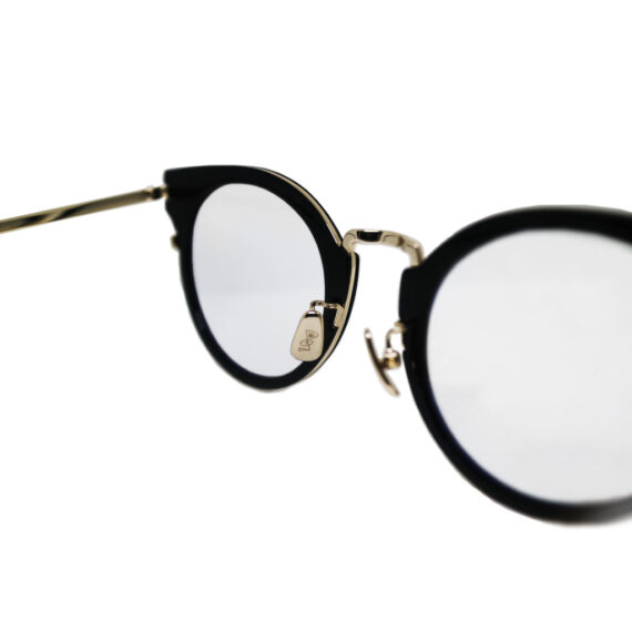 丸みのあるキャッツアイシェイプが特徴のモデルで、フロントにはメタルシートを挟み込み、セルとメタルのコンビネーションの高級感を演出。