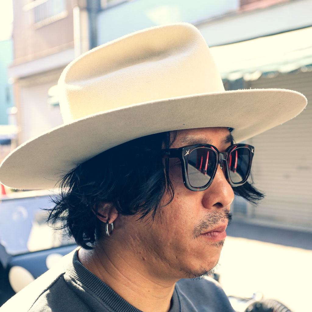 スタンダードなスクエアシェイプを通常のリム厚より2mmほどリムを厚く設定し、洗礼された雰囲気の中にも個性を演出する雰囲気に仕上げ、大きすぎず、小さすぎないサイズ感は性別問わず着用できるジェンダーレスモデルです。