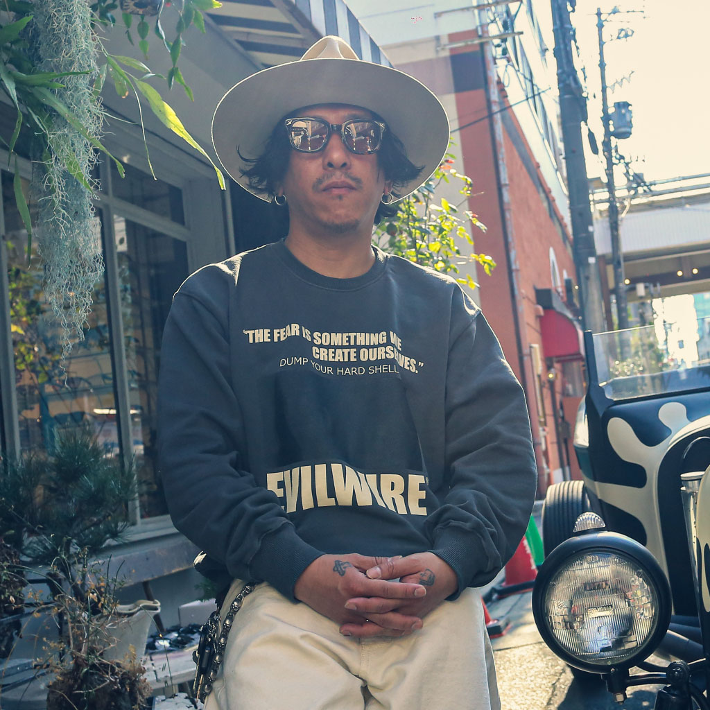 ロックンロールミュージック、アウトロウカルチャー、映画などを独自に解釈したファッションを表現するアパレルブランド「EVILWIRE」とのコラボレーションモデル。