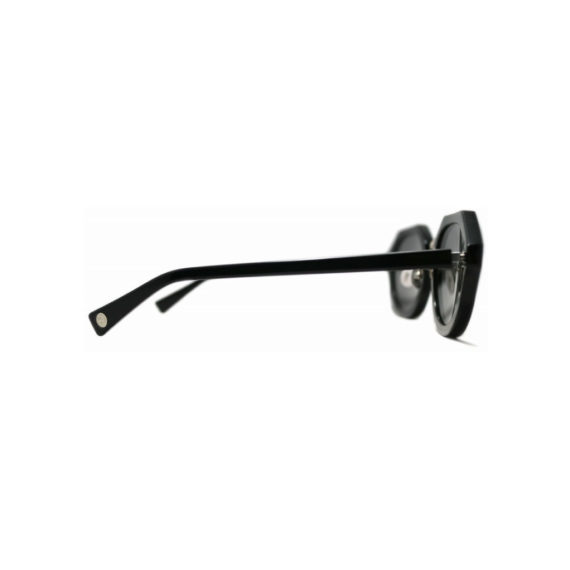 厚めに設定したリムと、大ぶりなサイズ感がモードな雰囲気を演出し、フロントエンドにはヘキサゴンスタッズ、テンプルエンドにはブランドロゴを埋め込み、上品な趣の中に遊び心を込めた一本です。